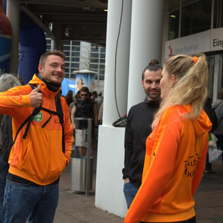 Sonntagmorgen 8:30 Uhr: Aufbruch zur Festhalle. Auf dem Weg dorthin wurden unsere Marathonis und unser Mini-Marathoni Finn von einigen Teammitgliedern begrüßt, die sich morgens extra auf den Weg gemacht haben, um an der Strecke zu supporten. An dieser Stelle nochmals ein riesen großes DANKE an jeden einzelnen, dass ihr den Weg auf euch genommen habt! Euer Support an der Strecke war großartig und hat dazu beigetragen, dass man selbst bei km 35 mit schmerzenden Beinen noch über die Strecke fliegen konnte!